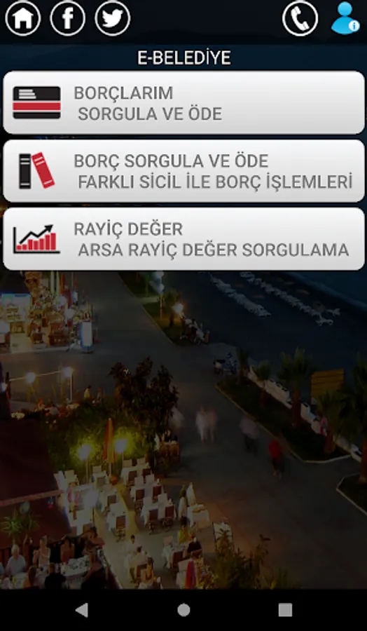 - E-Municipality: Registry query, you can do things like credit card debt payments and the fair value of land interrogation.