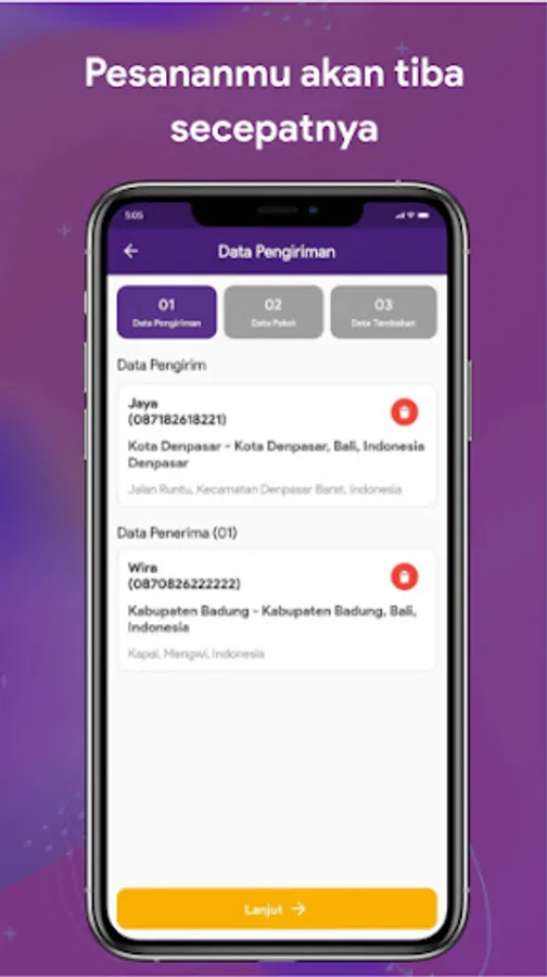 SAMPEIN menyediakan layanan pengiriman barang berbasis aplikasi. Untuk saat ini tersedia di Pulau Bali. Kamu bisa menggunakan jasa pengiriman SAMPEIN dengan waktu pengiriman yang kamu inginkan.
