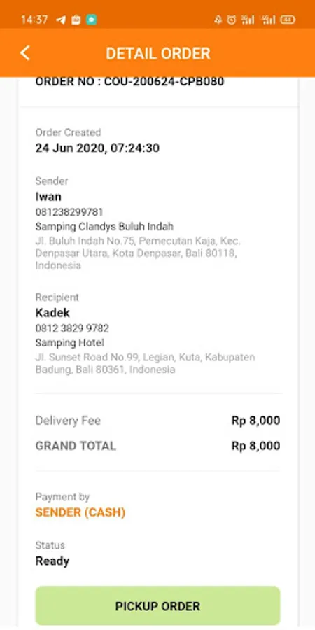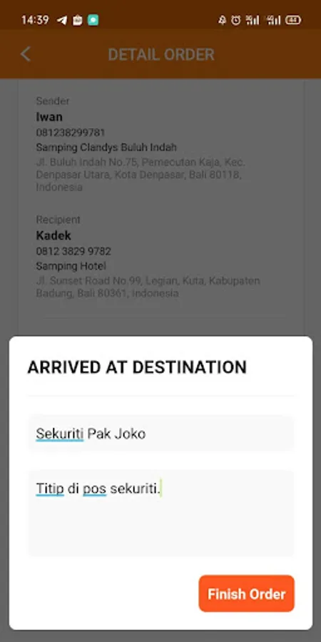 Aplikasi ini digunakan oleh Driver SAMPEIN untuk memantau pergerakan order dan update order status.