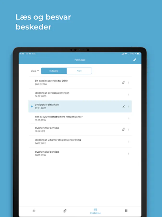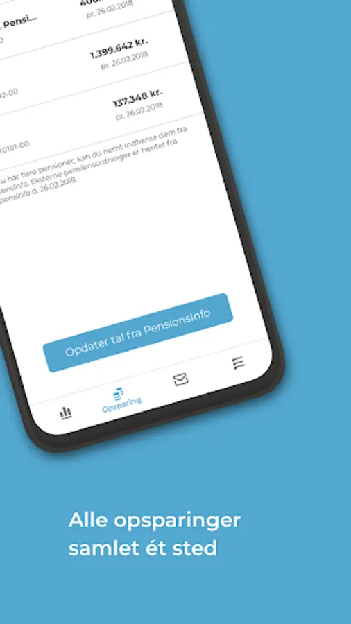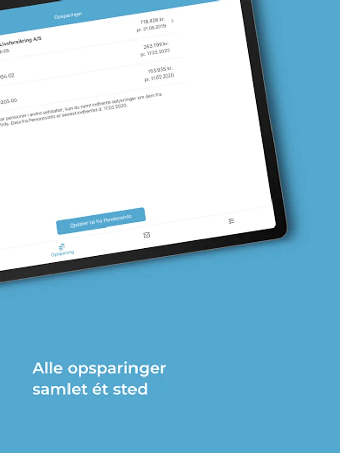 We are constantly improving the app and adding new functionality. Feedback and ideas are therefore very welcome. Use the feedback button in the app or send it directly to feedback@sampension.dk.