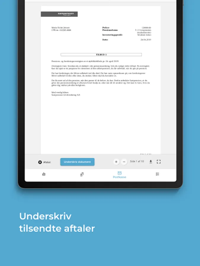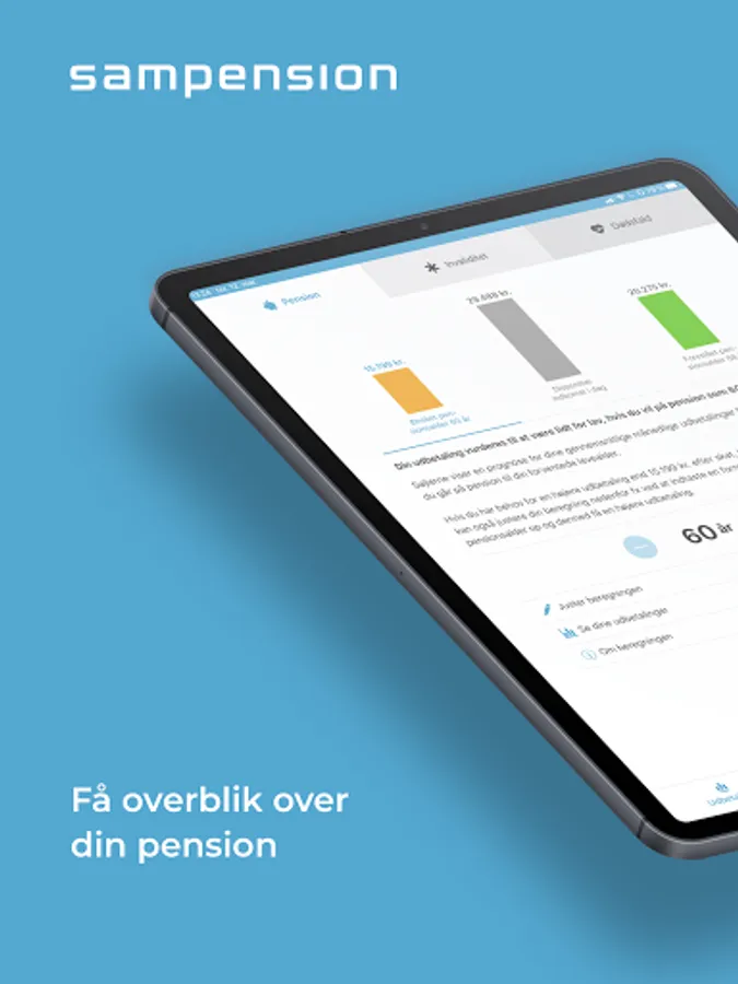 Sampension's app is an advisory and self-service tool that gives you a complete picture of your personal finances at retirement, loss of earning capacity and death.
