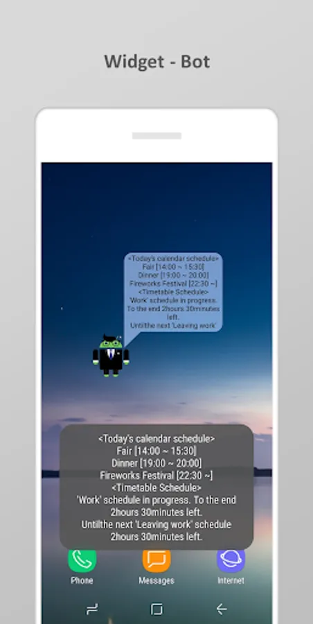 - Widget(Bot) will provide a useful information based on user's calendar information.