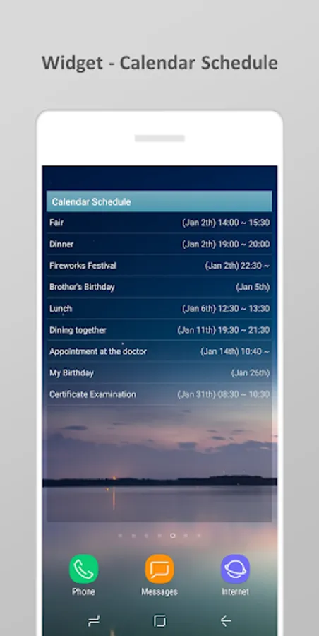 - Provides a Widget(Calendar) to present calendar information after today's date based on user's calendar information.