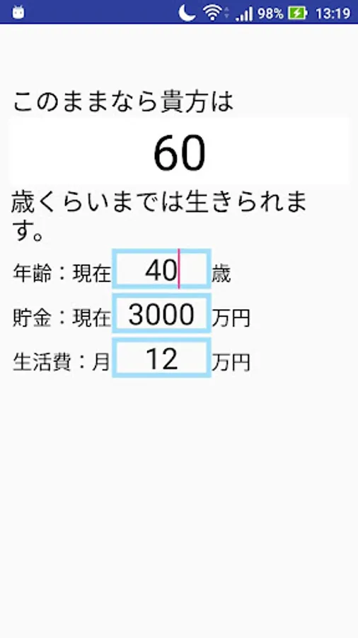 Age, savings, will tell you you can forever live on just to enter the living expenses