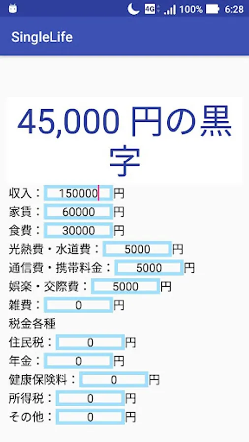 Calculating income, food, utility costs, surplus from such tax the (deficit)