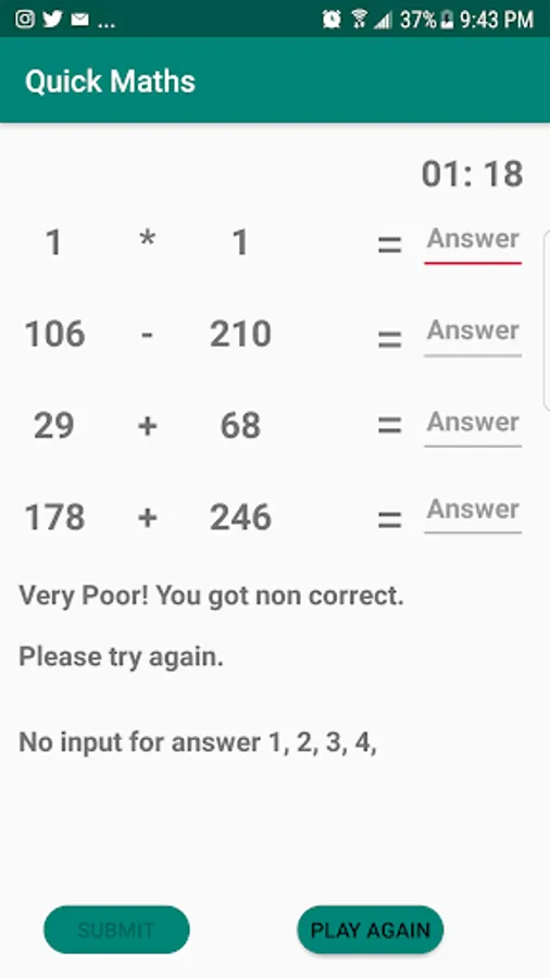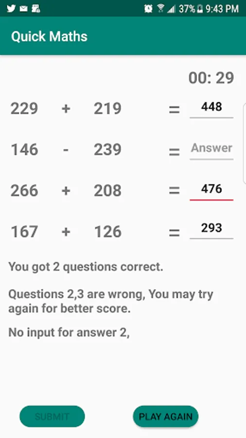 Quick math game to sharpen your mind, answer the generated questions before the time runs -out