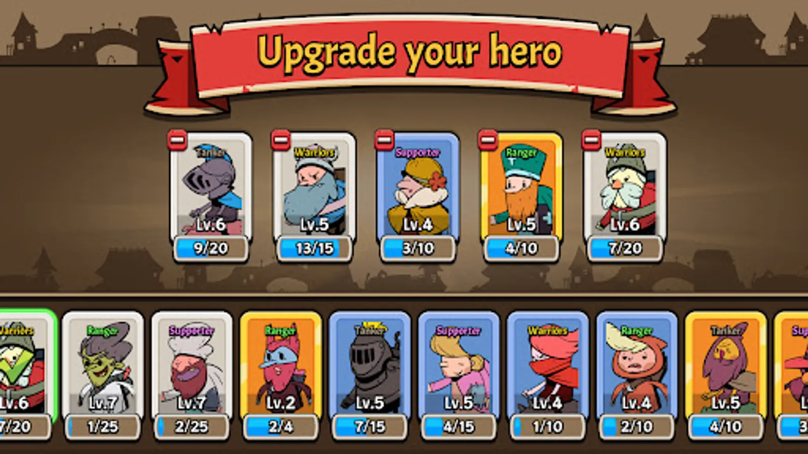 By collecting/changing Hero cards, and arranging different formations, player will be fight for the win. You can experience different battles by acquiring various heroes such as warriors, archers, tankers, and healers!