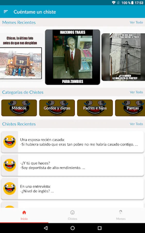 Here's your free jokes and memes app. The best short jokes in text or image format. The funniest memes. In short, those jokes that you like to share in your state and on your social networks.