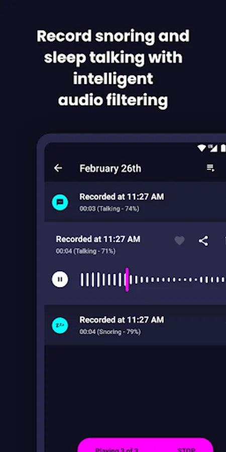 • Noise activated sleep recorder that uses machine learning to only record snoring or talking