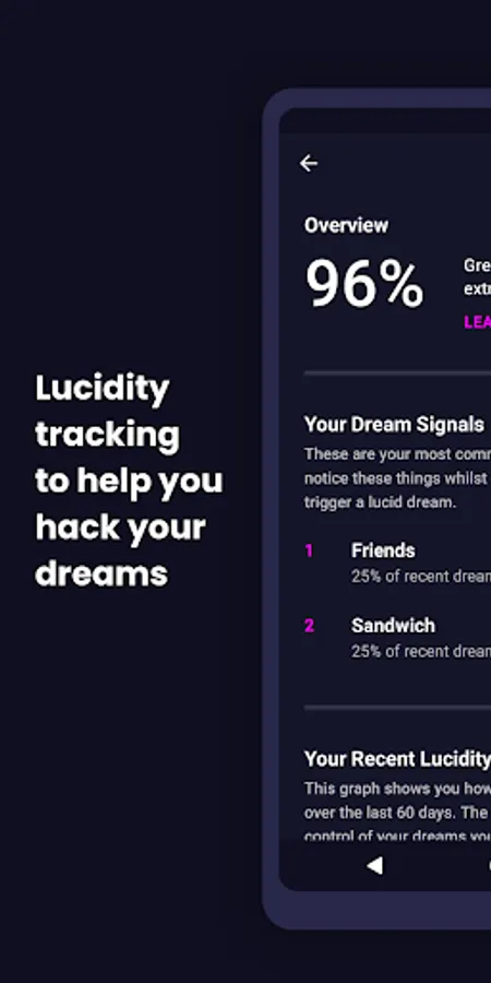 • Record your dreams and lucid activity with automatic progress tracking