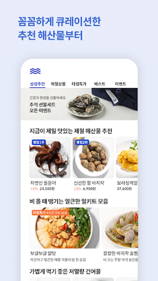 We have collected fresh marine products from all over the country, as well as seafood meal kits that can only be found at Samsam Seafood.