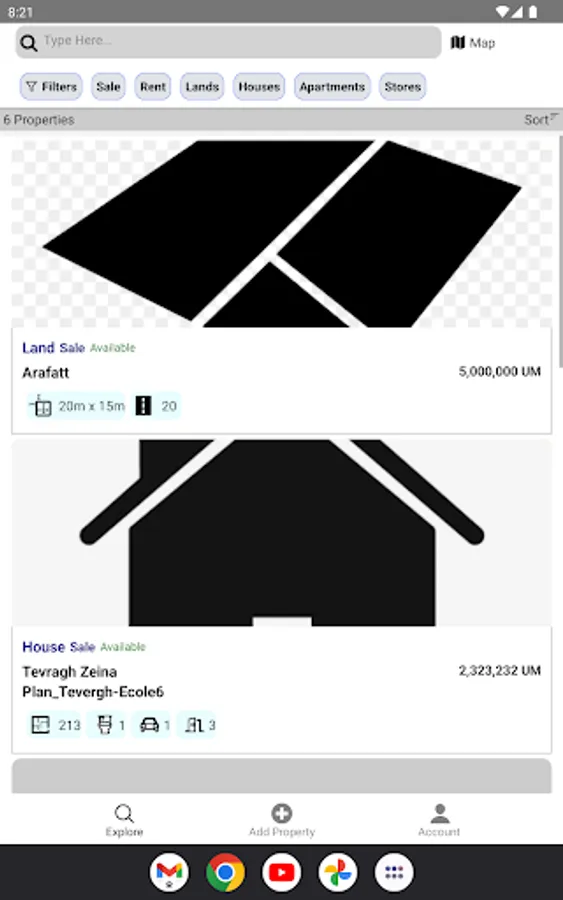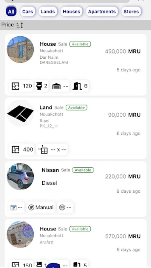 An easy way to list or explores rentals, properties and cras for sale, with a friendly easy UI navigation and advance filters feature it's now easier than anytime before to list your properties and cars, or explore rentals and sales in Mauritania.