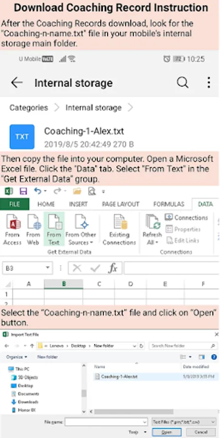 You can record the Coaching Sessions into your mobile device. The GROW coaching records can be downloaded and opened with Microsoft Excel.