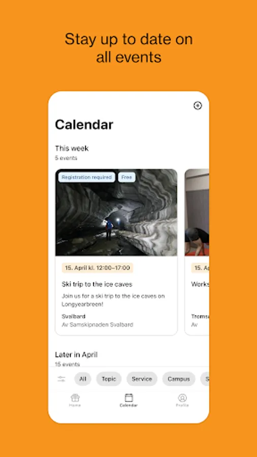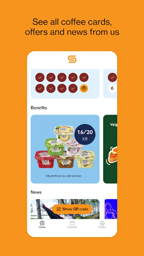 With the Samskipnaden app you can log in with your Samskipnaden My page user and get access to all your offers and perks, including your loyalty cards—so you know when the next free coffee is due. You can open a QR code and easily scan at all our restaurants and coffee shops to automatically get the best prices and offers. In addition, you can keep up with what's going on around campus in the student calendar. In the calendar, you can read about and sign up for events on campus and add them to your calendar.