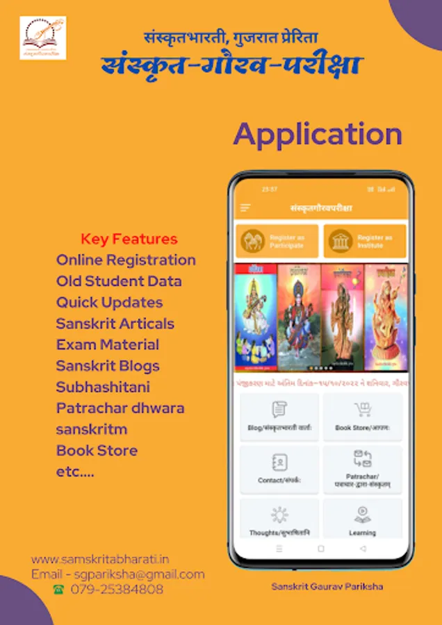 In order to introduce the simplicity and sweetness of the Sanskrit language, the project “Sanskrit Gaurav Pariksha” is going on all over the country. In Gujarat also the work for this exam is going on from Ahmedabad. This Sanskrit Gaurav Pariksha project has been running for 18 years in Sanskrit Bharati Gujarat. It has four exams. The examination is conducted in four sections namely 'Praveshika', 'Pradipika', 'Pramodika' and 'Pravahika'. So far two and a half lakh examinees from Gujarat have participated in this. So hope you too get introduced to the simplicity and sweetness of Sanskrit by registering for the exam from this app.