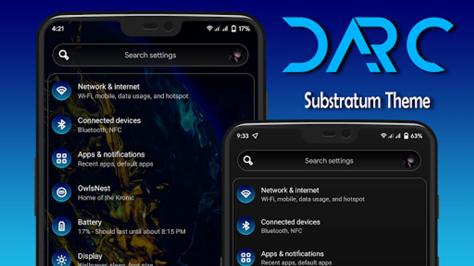 Darc is an powerfull Dark, Black, Clear and Gradient Theme for Substratum and Synergy for samsung