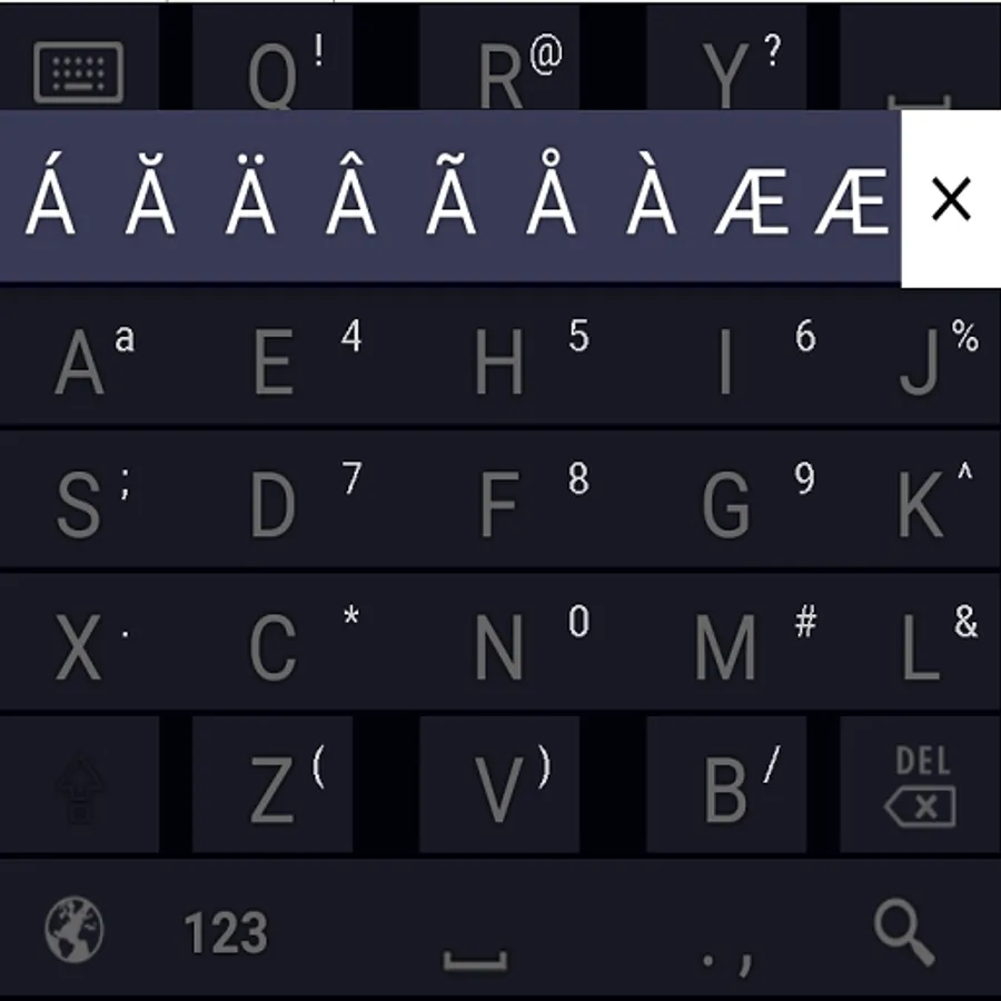 2. Long-key touch technology allows you to enter all Latin characters on the same