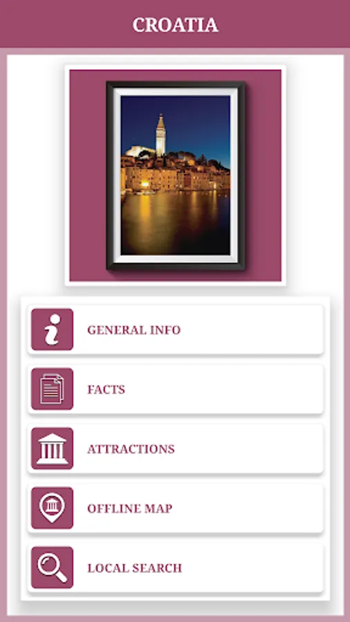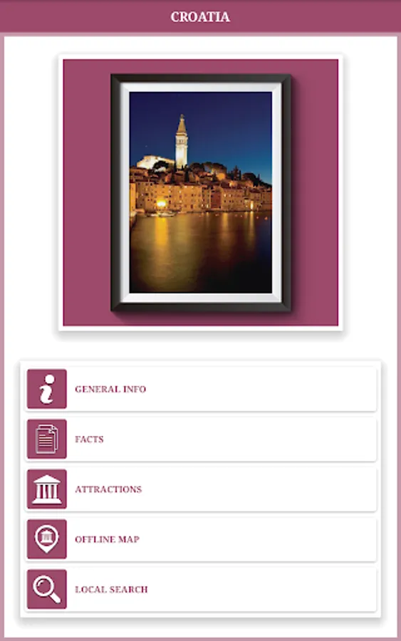 This is a premier Android app catering to almost every Travel information of Croatia. It features 5 different modules providing information of the Croatia like General Info, Facts, Attractions, Offline Map, Local Search(Nearest Search).