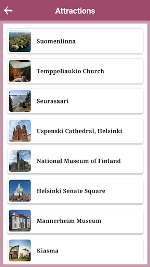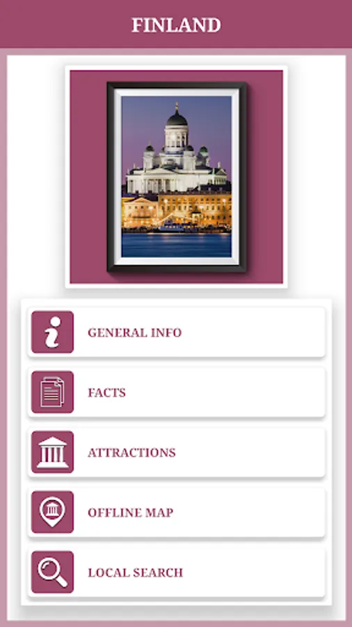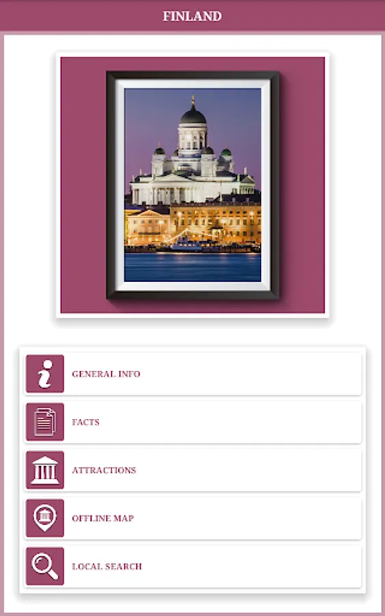 This is a premier Android app catering to almost every Travel information of Finland. It features 5 different modules providing information of the Finland like General Info, Facts, Attractions, Offline Map, Local Search(Nearest Search).