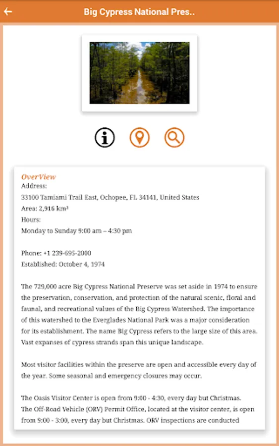 Florida State is a grand American Vacation destination you don't want to miss! Use this app to Provide Complete information about State and National Parks in Florida State by Location, Amenities, Campgrounds, Address, Information, Facts, Pictures, Map, Directions, Rout Map and Near Search.