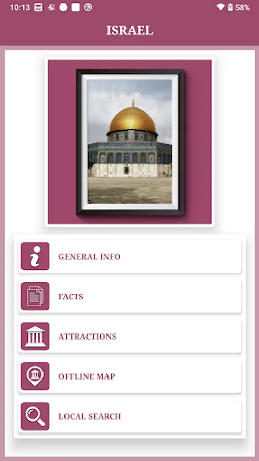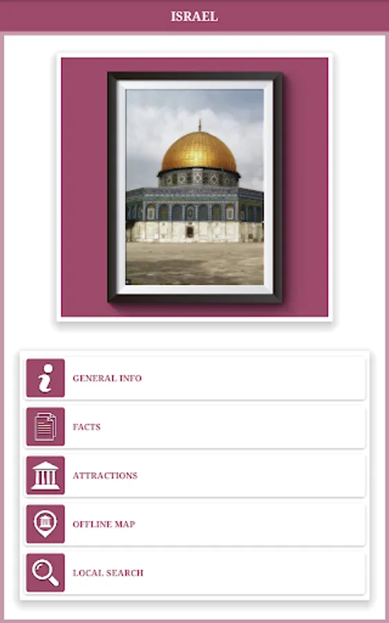 This is a premier Android app catering to almost every Travel information of Israel. It features 5 different modules providing information of the Israel like General Info, Facts, Attractions, Offline Map, Local Search(Nearest Search).