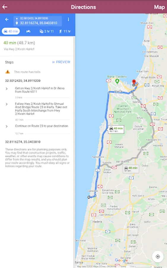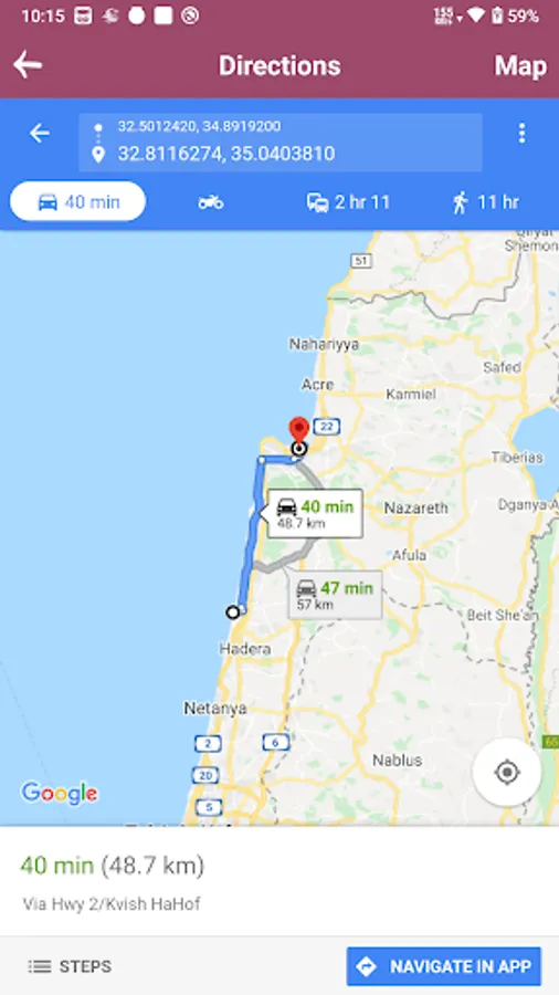 √ GPS facility is enabled to show the directions and route map.