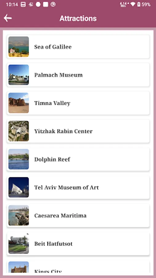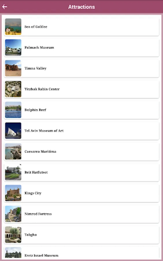√ App shows available Attractions in Israel.