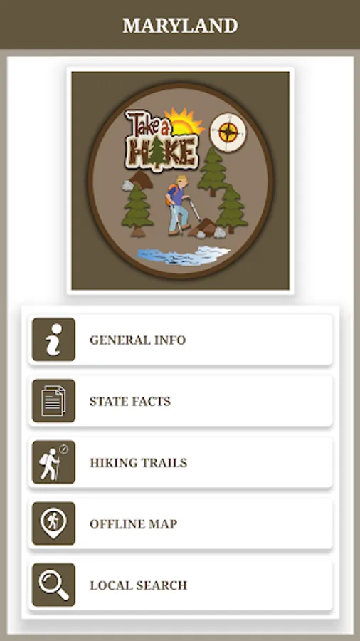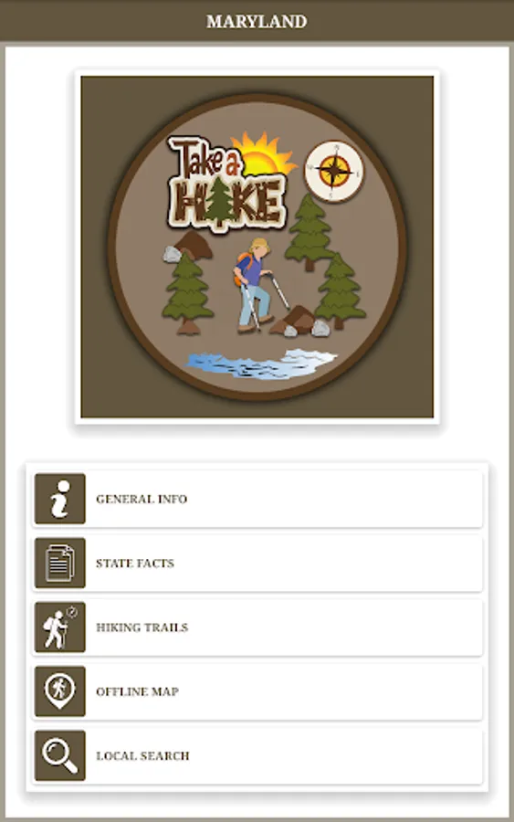 This is a premier Android app catering to almost every information of Maryland State. It features 5 different modules providing information of the Maryland State like General Info, State Facts, Hiking Trails, Offline Map, Local Search(Nearest Search).