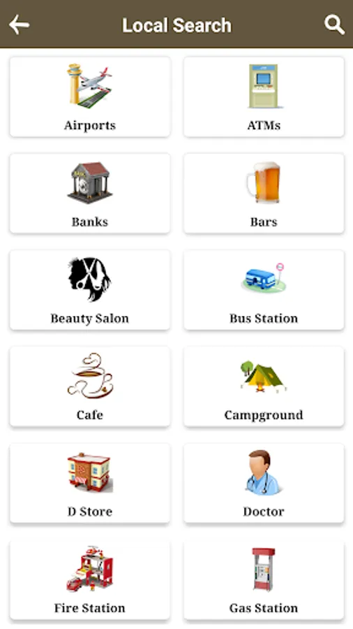 √ Find list of available Campgrounds, Restaurants, Bars, Hospitals, Drug Stores, Banks, ATM's, Shopping malls, Pizza huts, Gas Stations and Railway stations etc..