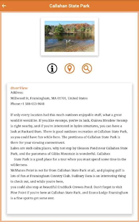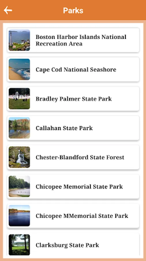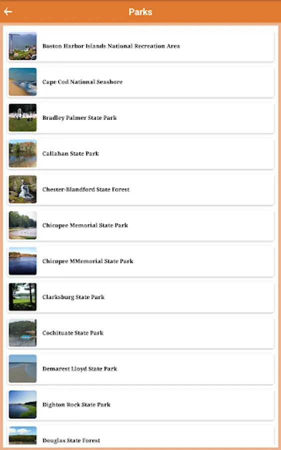 This app Lists the all State and National Parks in Massachusetts State, It’s look like a Guide.