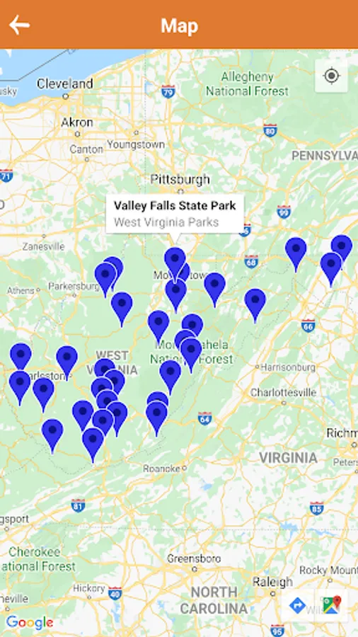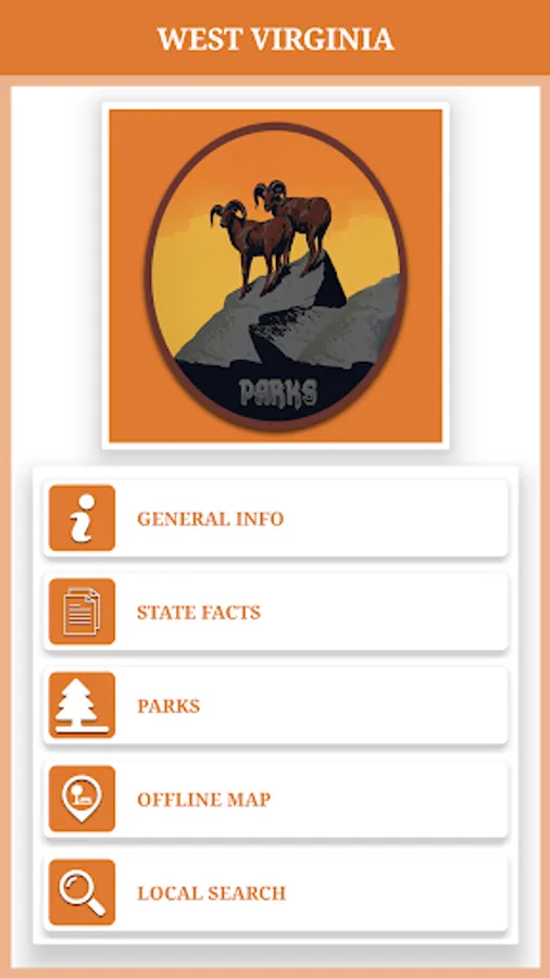 This is a premier Android app catering to almost every information of West Virginia State. It features 5 different modules providing information of the West Virginia State like General Info, State Facts, State & National Parks, Offline Map, Local Search(Nearest Search).