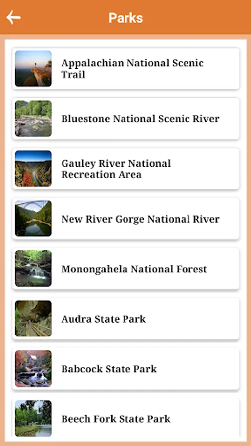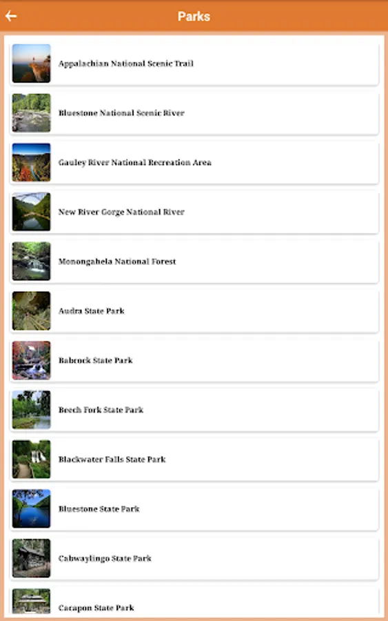 This app Lists the all State and National Parks in West Virginia State, It’s look like a Guide.