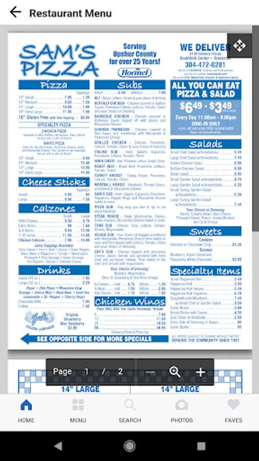 Sam opened the doors to his pizza shop for the first time back in 1991, when he was just 18 years old. It was his dream to serve the best pizza to Buckhannon, WV and the surrounding community. Now, Sam continues to give back to the community by not only providing delicious pizza, but by also supporting local businesses, youth and teen sports teams, and community events. Our customers love our restaurant’s connection to the community and our reasonable prices for our fresh, delicious pizza. In addition to our regular dough, we offer gluten-free pizza dough that is perfect for those with sensitivities and allergies. Try it with any of Sam’s delicious pizzas! Now, order online with our EZTOUSE app!