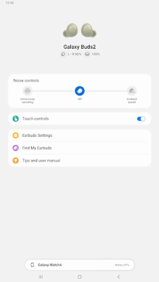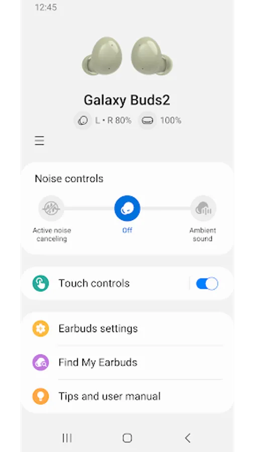 The Galaxy Buds2 Manager allows you to use features such as device settings and status view when connected to a Galaxy Buds2 device.