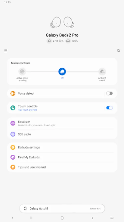 The Galaxy Buds2 Pro Manager allows you to use features such as device settings and status view when connected to a Galaxy Buds2 Pro device.