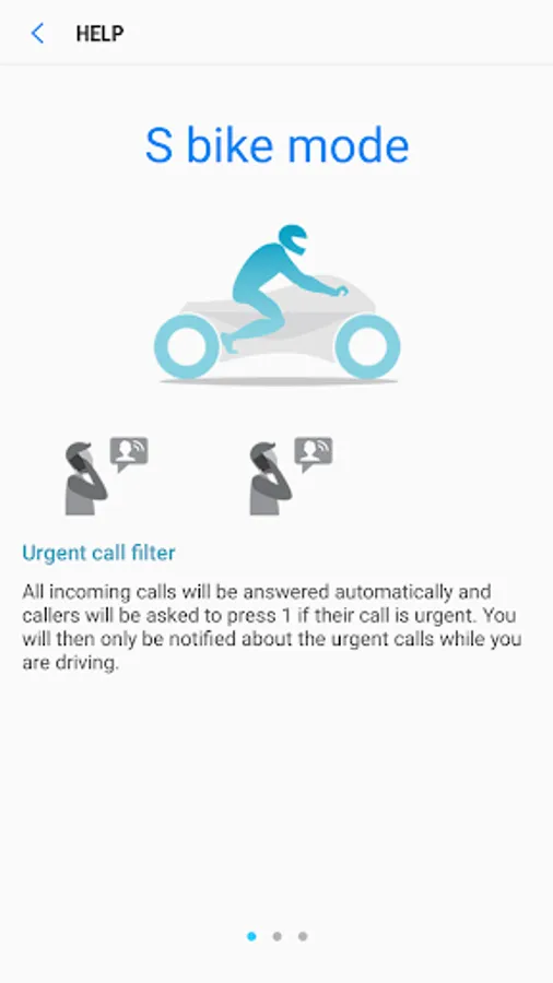 Do you find yourself frequently checking your phone while riding, mistaking unimportant notifications for urgent calls, and missing urgent calls? With S Bike mode enabled you will not be bothered by frequent (and open spam) calls and notifications while you are driving. S Bike mode helps you ride without anxiety and distraction by filtering all incoming calls and notifying you only about the urgent calls and not allowing you to use your device while driving. When S Bike mode is enabled all incoming calls will be answered automatically. An audio answering message in your chosen language will ask the callers to press 1 if their call is urgent. You will then only be notified about the urgent calls while you are driving. With its signature ringtone designed to stand out in noisy traffic conditions, you will never miss an urgent call again.