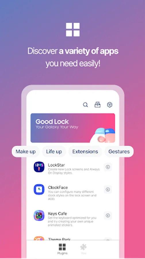 With Good Lock’s plugins, users can customize the UI of the status bar, Quick Panel, lock screen, keyboard, and more, and use features such as Multi Window, audio, and Routine more conveniently.
