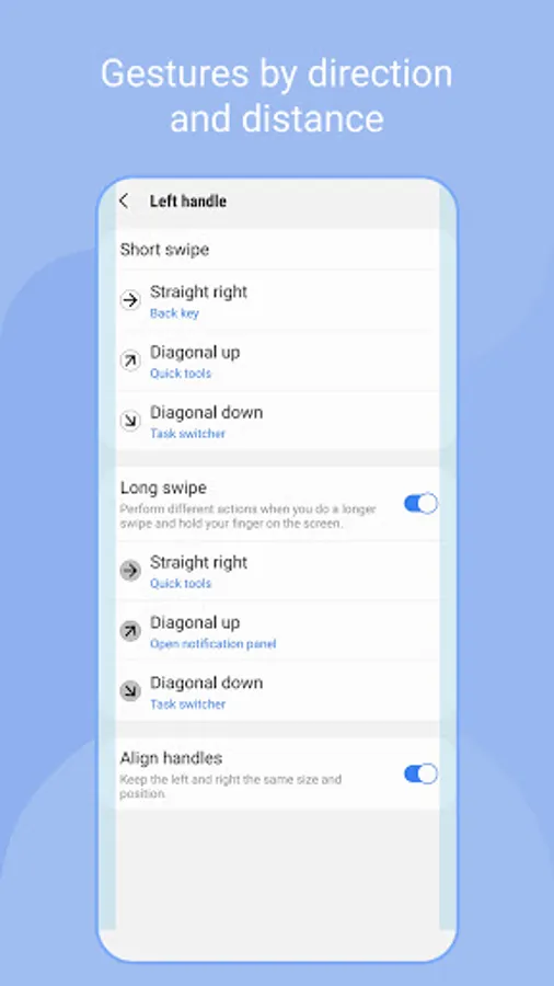 Once you get used to using short swipe gestures, you can set more features for long swipe gestures.