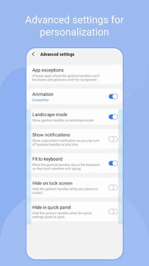 If the touch interference is severe with running application such as game, you can set [App exceptions] in [Advanced Settings], then the gesture handles will not work when the app is running.