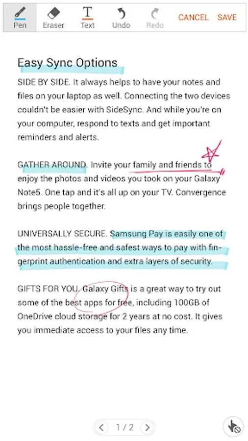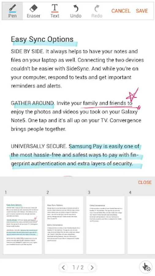 - Save a PDF file with your text and drawing content