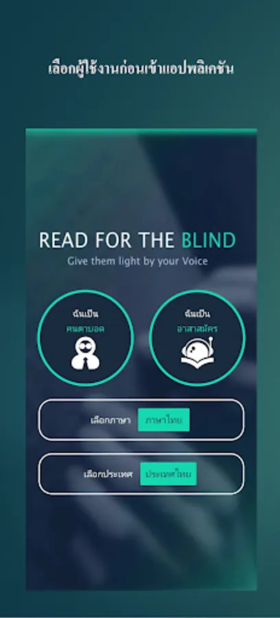 “Read for the Blind” application is a property of Thai Blind People's Foundation, established in 1998. It is a non-profit organization with the key objective to support blind people to be able to survive in the society.