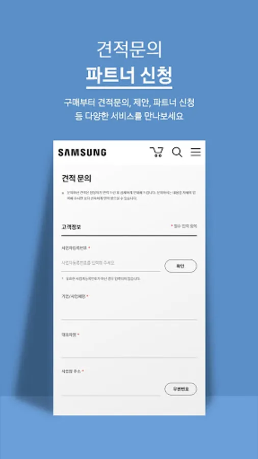 Meet various services such as purchase, quotation inquiry, proposal, and partner application.