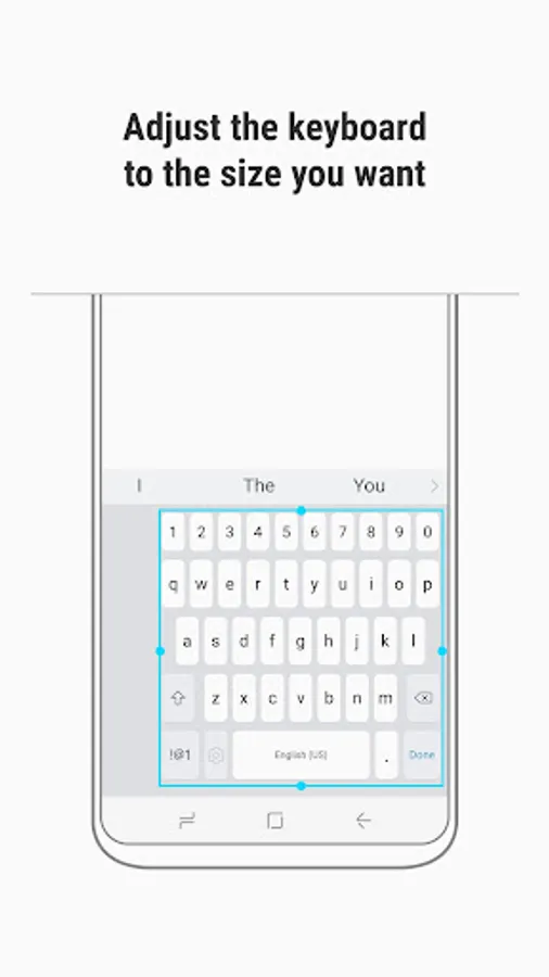 - Keyboard size, Number keys, and Alternative characters: You can adjust the keyboard size freely in all four directions, and also decide whether or not the Number keys and Alternative characters should be included on the keyboard.