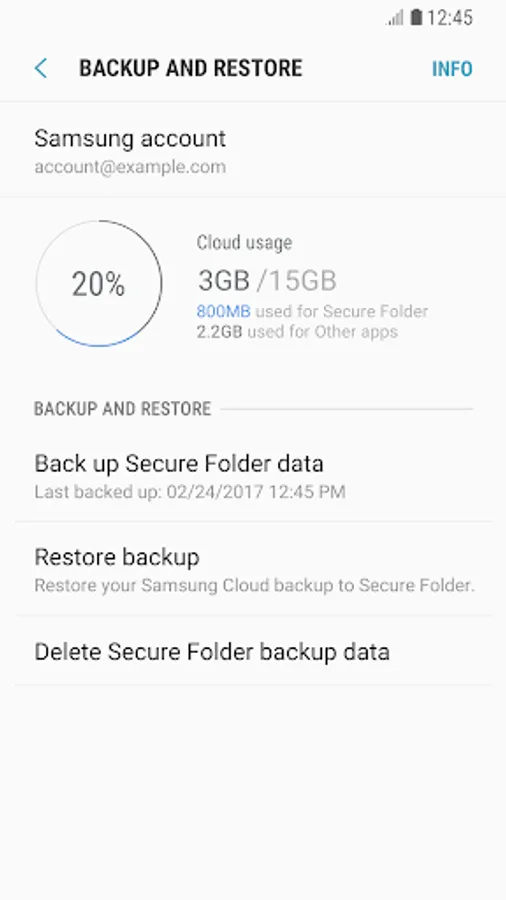 - Phone: For the purpose of backing up and restoring the content in Secure Folder