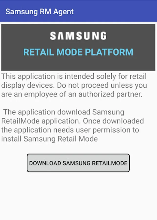 nAdditionally, this application has the capability to download and install a version of SAMSUNG RETAIL MODE APP based on the device model.