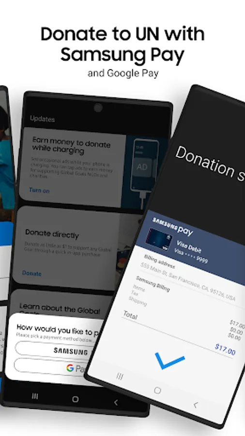 5. Donate to your favorite Goals. All of the donations from the Ads displayed by this app will be made by Samsung to the United Nations Development Program.