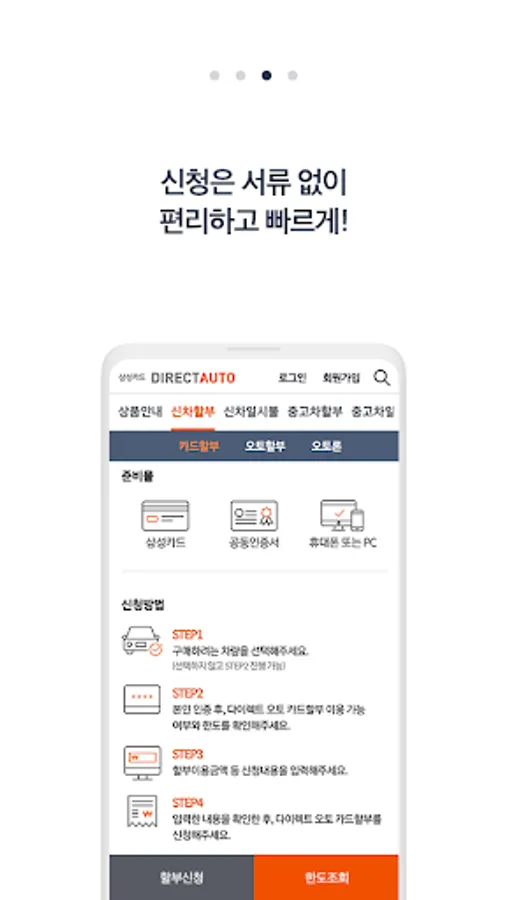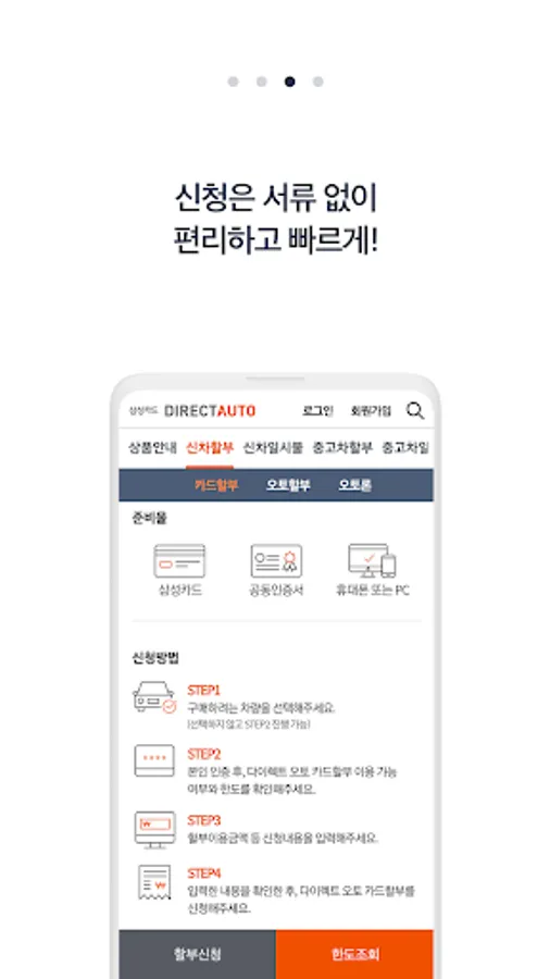 ※ Access authority settings can be changed in the phone's Settings > Applications > Samsung Card Direct Auto > Permissions.