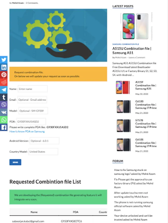 Samsung Combination File helps in enabling ADB and OEM unlocking for remove FRP lock. it can also remove FRP Account from samsung mobile phones.