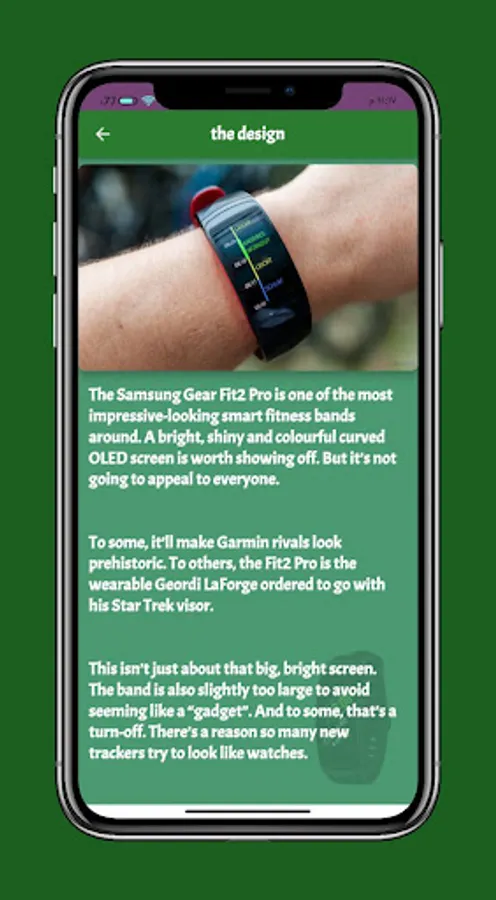 - samsung gear fit 2 pro app beautiful appearance, decent and comfortable to the eye.