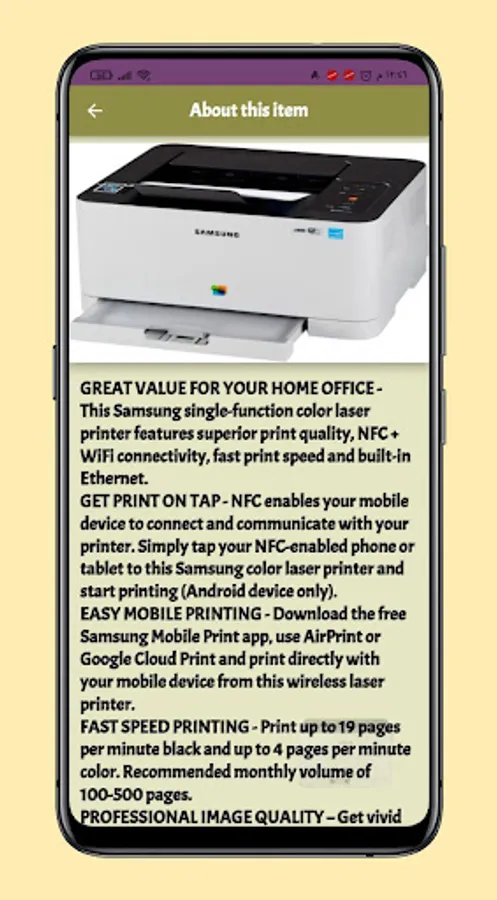 Through the application Samsung Xpress C430W Printer you can learn about many specifications and features of a printer Samsung Xpress C430W Printer, and the application also includes an application Samsung Xpress C430W Printer on the video, features and specifications easily